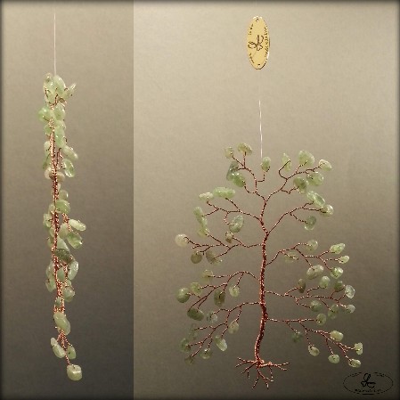 Äste und Stamm sind aus Silberdraht (versilbert) und die „Blätter“ aus Chrysopras.